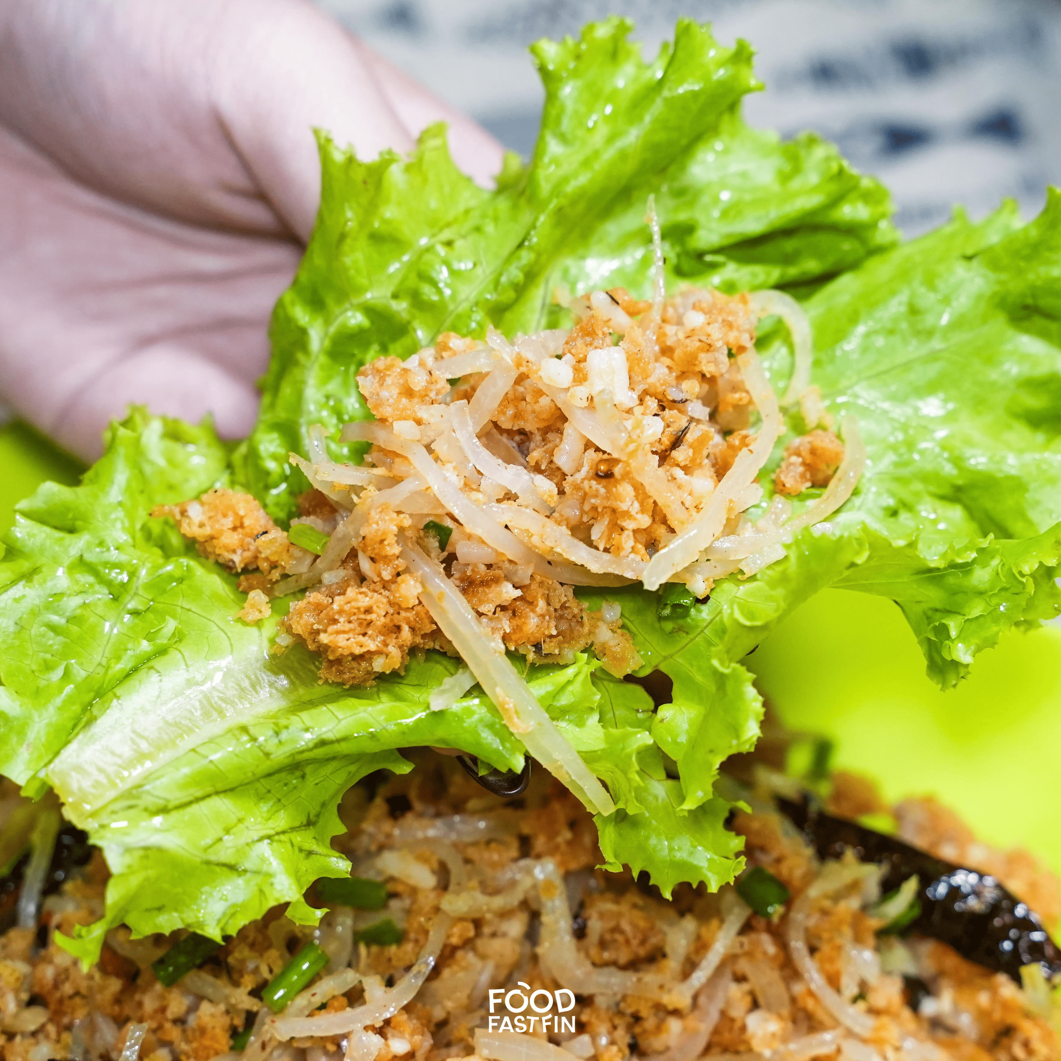 จานไฮไลต์ต้องยกให้ “แหนมคลุก” ใช้แหนมสด หนังหมูเส้นเล็กนุ่ม ข้าวทอดกรอบแต่ไม่เหนียว ไม่แข็ง คลุกเคล้าเข้ากับพริกแห้งเพิ่มความเผ็ดสะใจ เสิร์ฟพร้อมผักสดกรอบๆ ช่วยตัดเลี่ยนได้อย่างลงตัว อร่อยครบเครื่องแบบต้นตำรับแท้