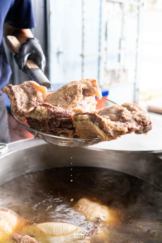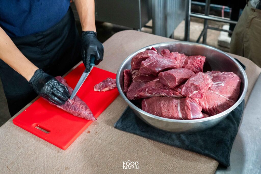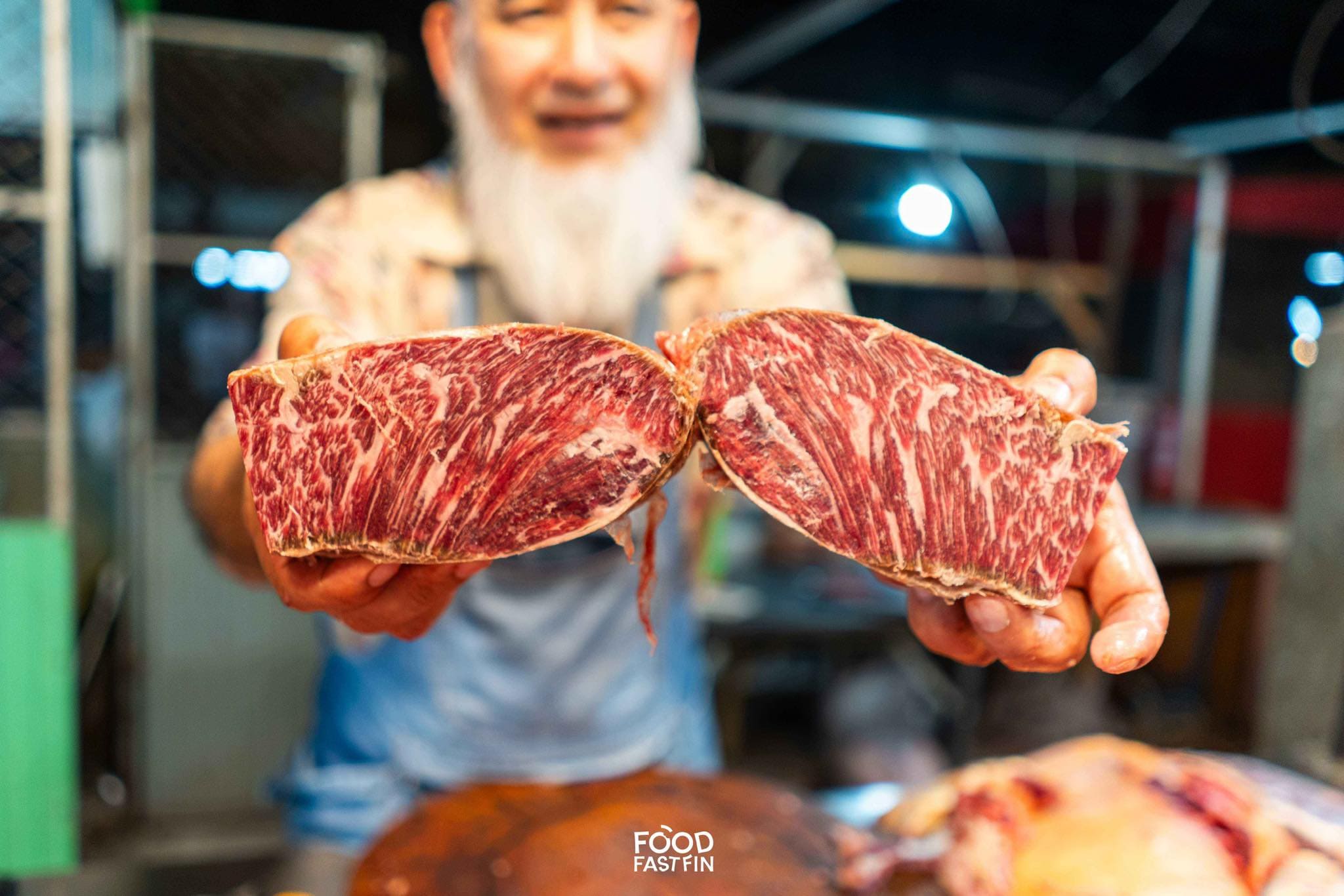 เฮียจ่อยไม่ได้แค่เลือกเนื้อเก่ง แต่ยัง “แต่งเนื้อ” ด้วยตัวเองทุกชิ้น! การเลือกและการตัดแต่งเนื้อของเฮียไม่ได้ทำแบบลวกๆ ทุกขั้นตอนมีเหตุผลเสมอ ถ้าเอ็นเยอะไป… ตัดออก! ถ้ามันแทรกมากเกินไป… โบกไปใส่กะเพราแทน! เพราะเนื้อเปื่อยของเฮียจ่อยต้องมี “ความพอดี” ทั้งไขมัน เนื้อ และเอ็นในสัดส่วนที่เหมาะสมเท่านั้นถึงจะผ่านด่านของเฮียไปลงหม้อได้