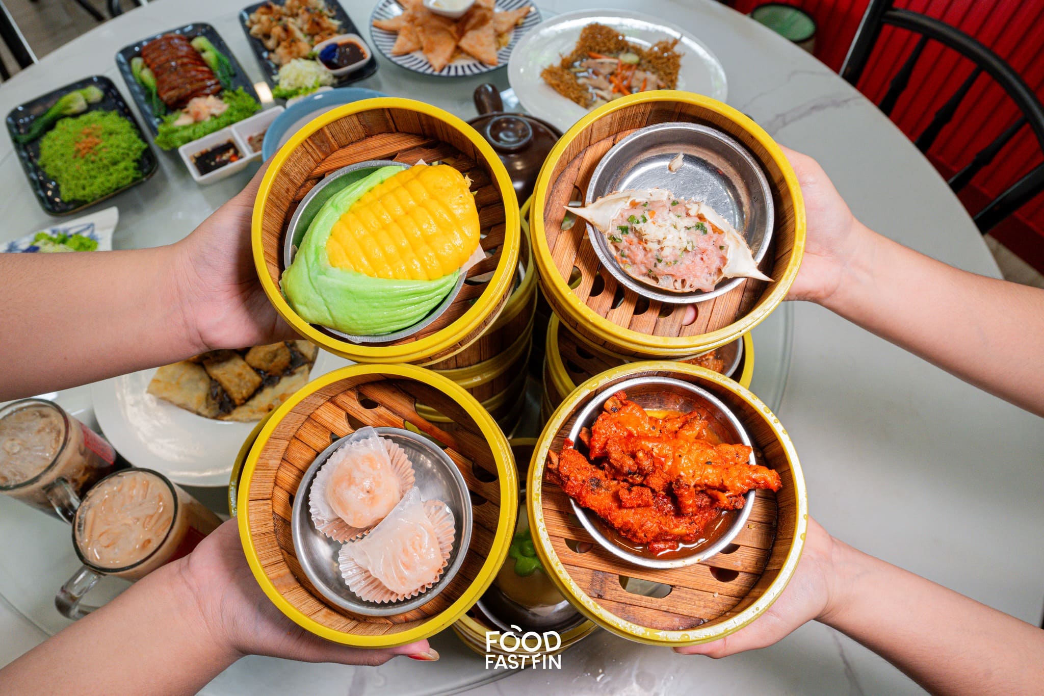 สำหรับใครที่ยังไม่เคยลองความอร่อยร้านนี้ ติ่มซำนึ่งร้อนๆ ควันฟูๆ ที่มีให้เลือกอีทกว่า 80 หน้า! ให้คุ้มสมกับราคาเริ่มต้นแค่ 35.- เอง เซ็ตเป็ดย่าง บะหมี่หยก ตอนหั่นเป็ดย่างนี่เสียงกรอบฉ่ำมาก เกี๊ยวเสฉวนลวกสดเดือดๆ จิ้มกับพริกเผาหม่าล่าคือดีและที่พลาดไม่ได้คือกุ้งกระเบื้อง เมนูนี้เฮียชอบมาก ขอซ้ำอีกๆ จะกินคู่โอเลี้ยง เก๊กฮวย ชาใต้ หรืออัญชันมะนาว ก็ฟินหมด แถมตบท้ายด้วยของหวานรวมมิตรกับทับทิมกรอบนมสด คือปิดมื้อได้ดีมาก!