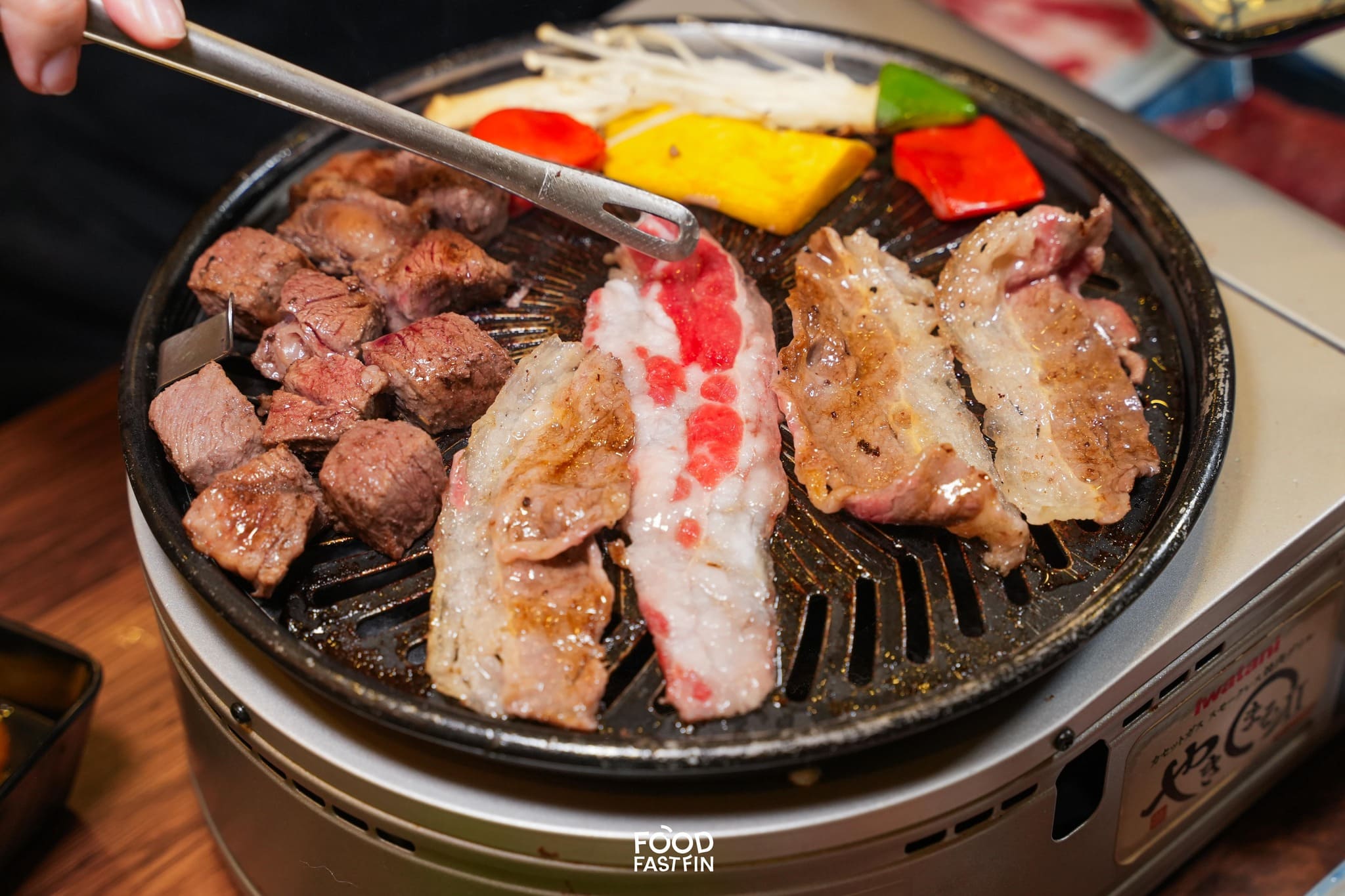 สำหรับไลน์บุฟเฟ่ต์ 399 บาท ทางร้านเสิร์ฟเนื้อครบทุกส่วนของวัวแบบจัดเต็ม มีให้เลือกตั้งแต่ Top-round, Skirt, น่องลาย, Chuck tender, Ripcap, Brisket (เสือร้องไห้), Sirloin, เนื้อลูกเต๋า, เนื้อปรุงรส และอีกหลากหลายส่วน เดินหยิบได้เองแบบไม่อั้น เหมือนยกวัวทั้งตัวมาเสิร์ฟให้ถึงโต๊ะเลยครับ