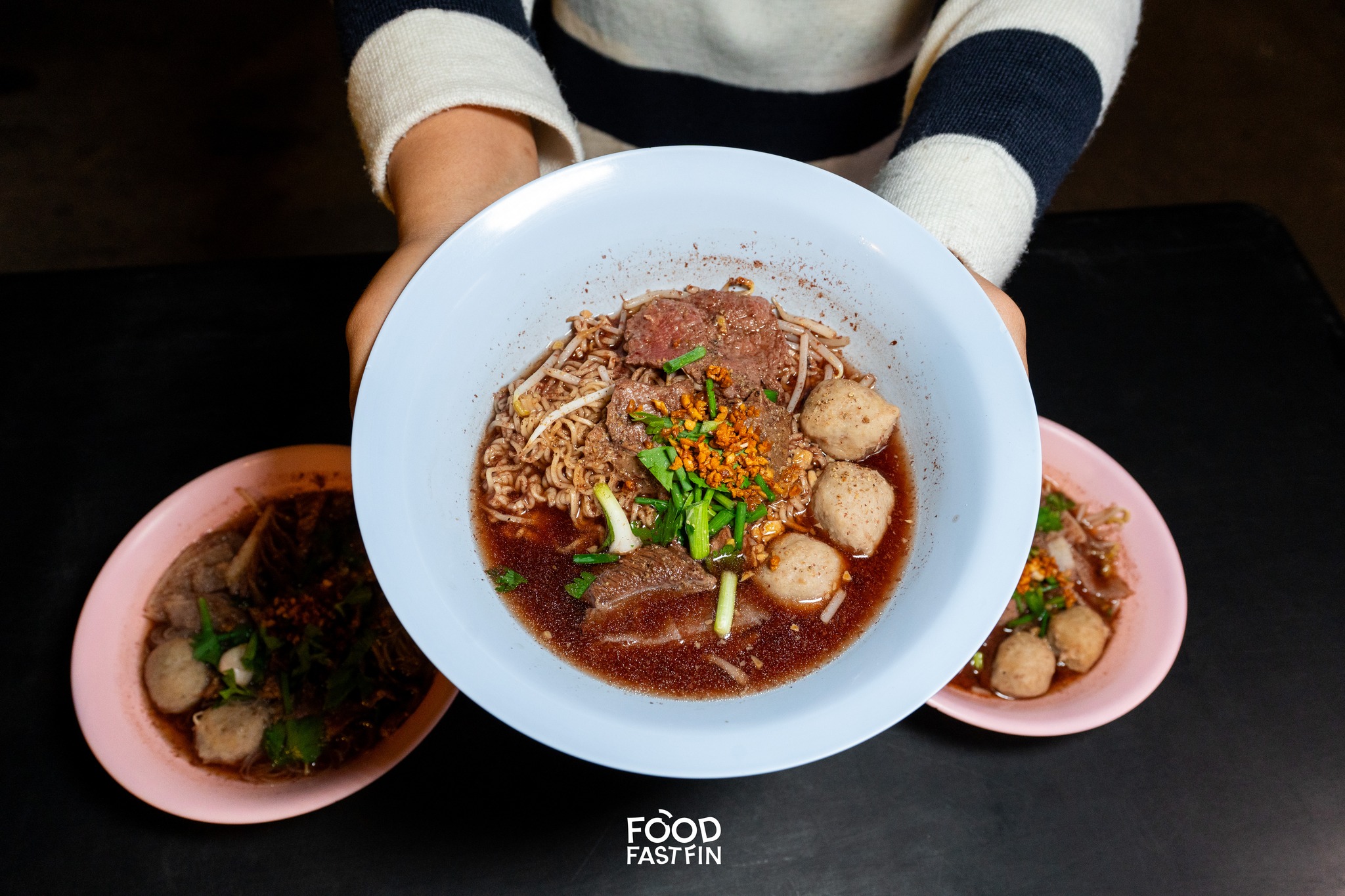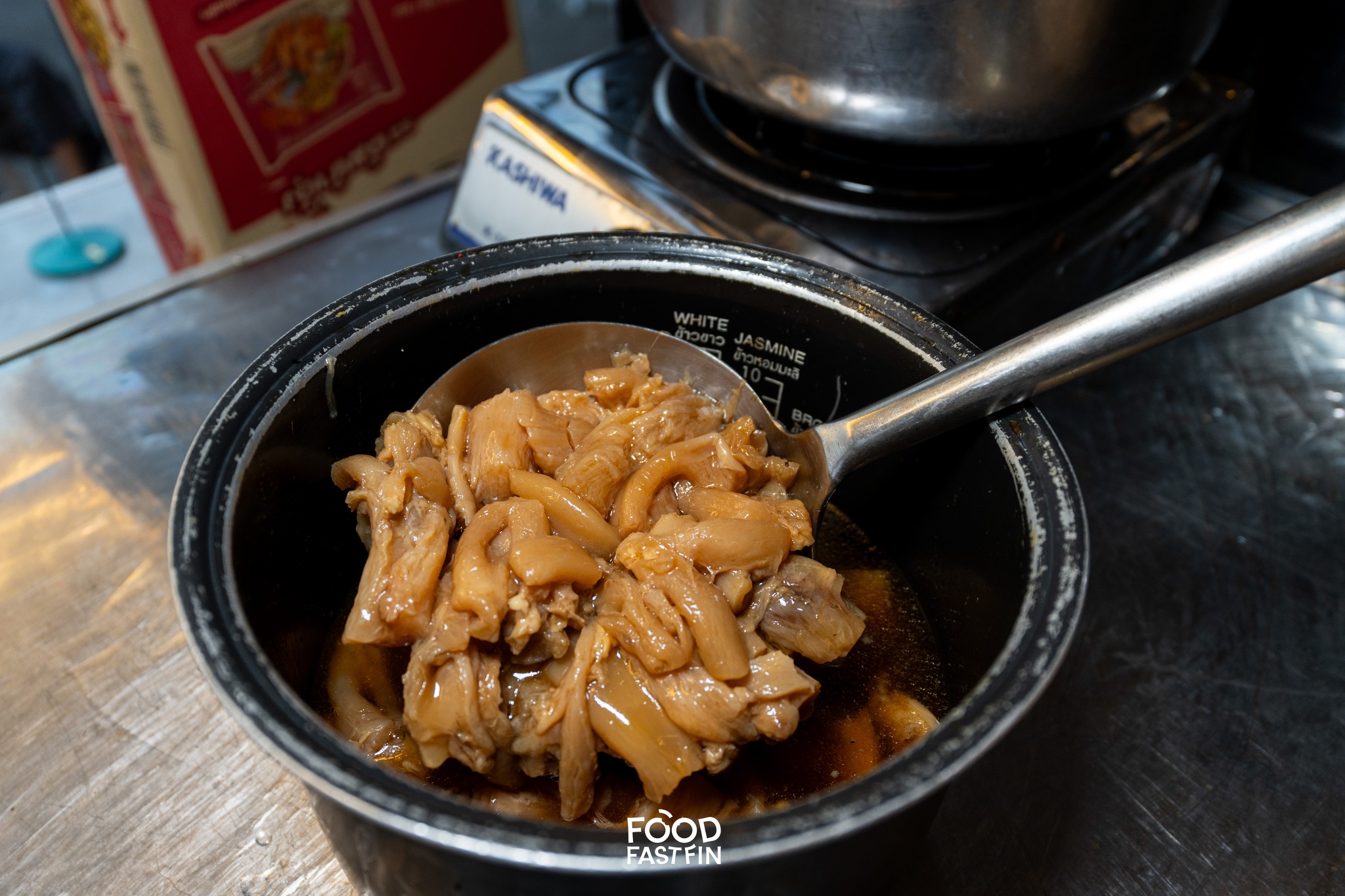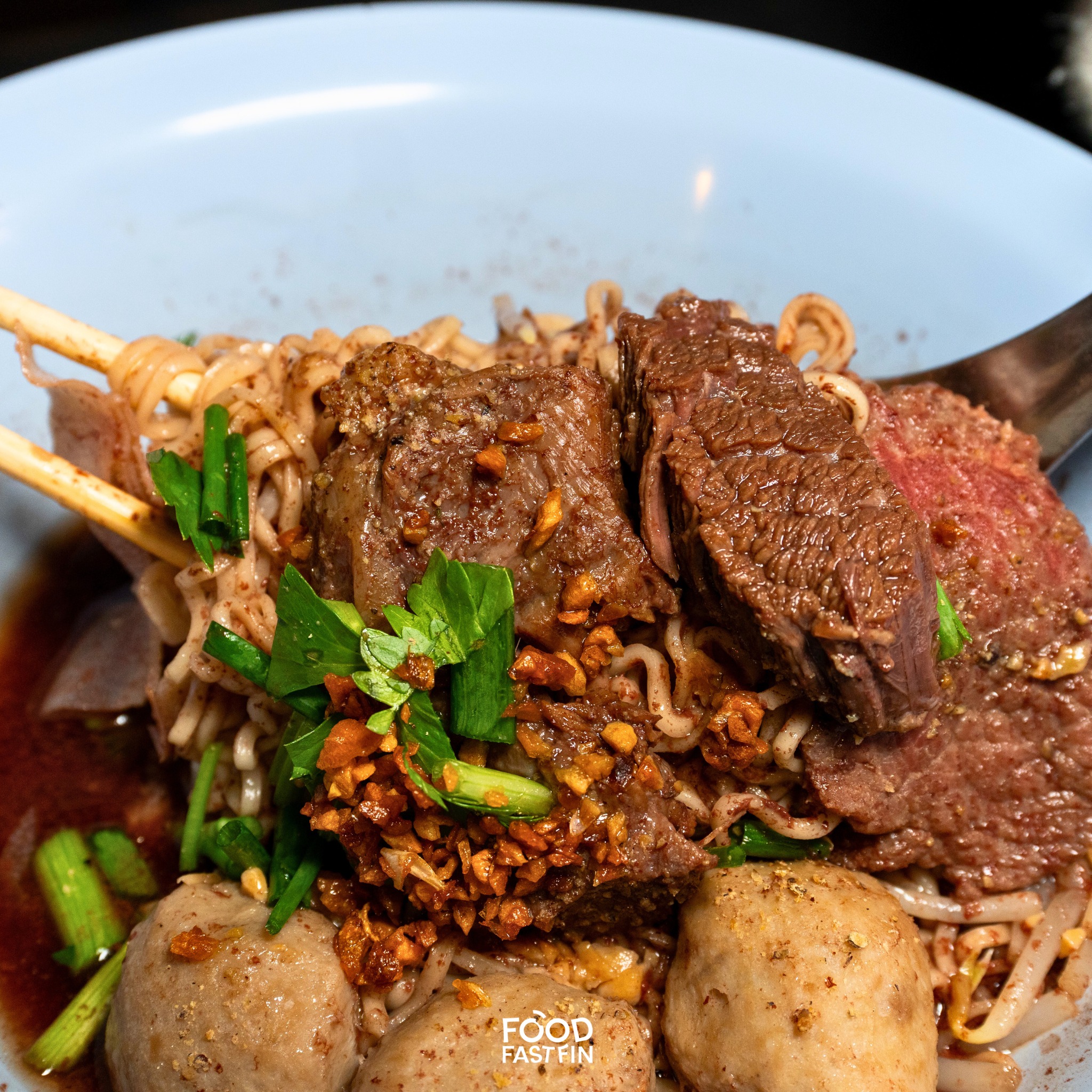 ทีเด็ดอีกอย่างของร้านนี้คือ เนื้อที่เสิร์ฟมาพร้อมทุกชามคือสโลว์คุกที่ใช้เวลานาน เช่น เนื้อโกเบและสามชั้นแทรกมันแทรกเอ็น หั่นชิ้นใหญ่พอดีคำให้เครื่องมาแบบอิ่มพอดีเลย