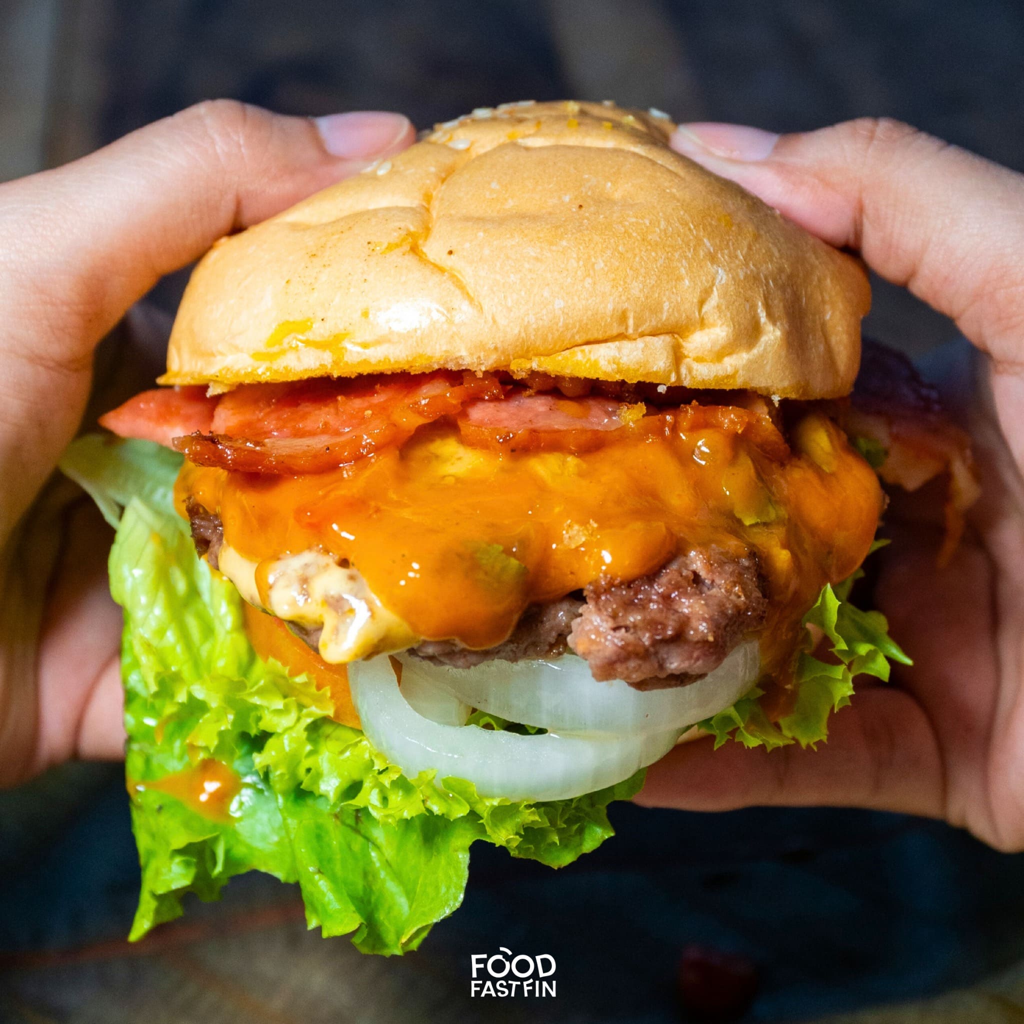 ครั้งแรกที่มาลอง ลองสั่งเป็นเบอร์เกอร์หมู+เบคอน 50.- กับเบอร์เกอร์เนื้อ 50.- บอกตรงๆ ว่าราคาแบบนี้หายากโคตร~ แล้วลุงแกให้ชีสฟรีทุกชิ้น ไซส์เบิ้มๆ ไม่ใช่คำสองคำหมด